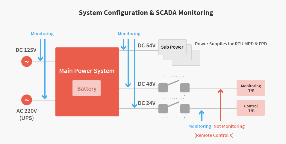 - Control : When power switch for monitoring & control of Electric Facilities is abnomally turned off, this system takes measures to provide power remotely. With this situation, if operator finds it necessary, personel is dispatched to the field site to take required measures.