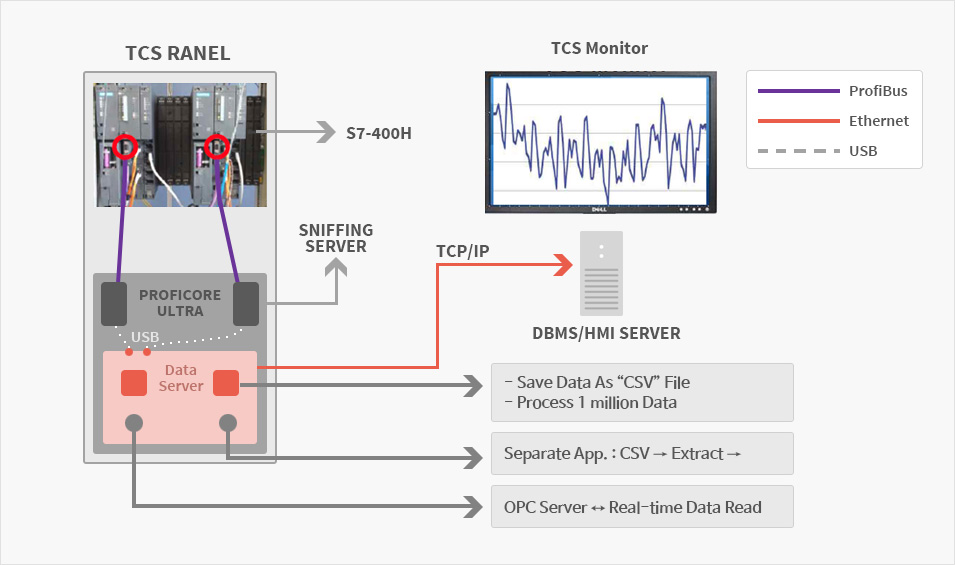 - UTMS server functions are physically seperated into Sniffing Server and DBMS/HMI Server, in order to make sure that TCS shall not be miss operated in any circumstances.