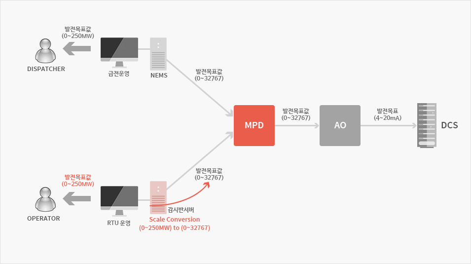 - RTU 감시반과는 내부 통신으로 연계하여 필요한 정보를 취득하고 처리하며, DCS (Distributed Control System)와 연계되는 AGC 관련 신호는 별도의 설비 추가 없이 현장제어부 입출력 단자를 활용하여 취득 및 출력할 수 있습니다.